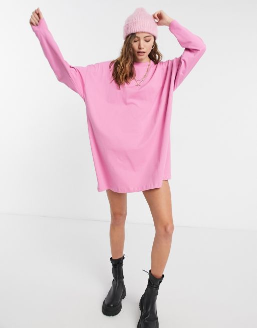 Basic Pink Jersey Oversized T Shirt Dress In The Style Usa